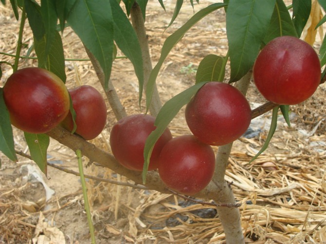 中油4號油桃植物特性:中國農業(yè)科學院鄭州果樹研究所育成。中油4號油桃果實近圓形,果頂圓,兩半部對稱,縫合線較淺,梗洼中深。大小較均勻,平均單果重160g,最大果重200g。果皮底色淡黃,成熟后全面著濃紅色,樹冠內外果實著色基本一致,光潔亮麗。果肉橙黃色,硬溶質,肉質細脆,可溶性固形物含量12%~15%,味濃甜,品質佳。